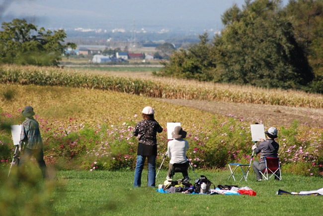 小春日和が続く。花茶の庭では、スケッチを楽しむ人達の姿。